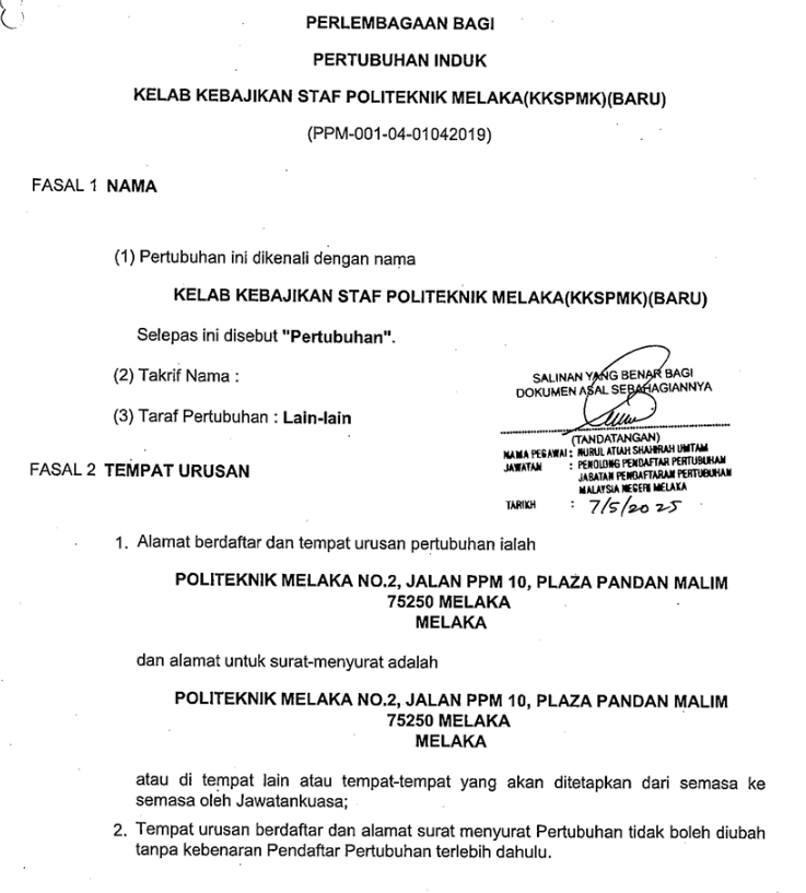 - Mengadakan program yang memberi faedah bagi mengeratkan hubungan silaturahim dan kerjasama di kalangan kakitangan Politeknik Melaka.